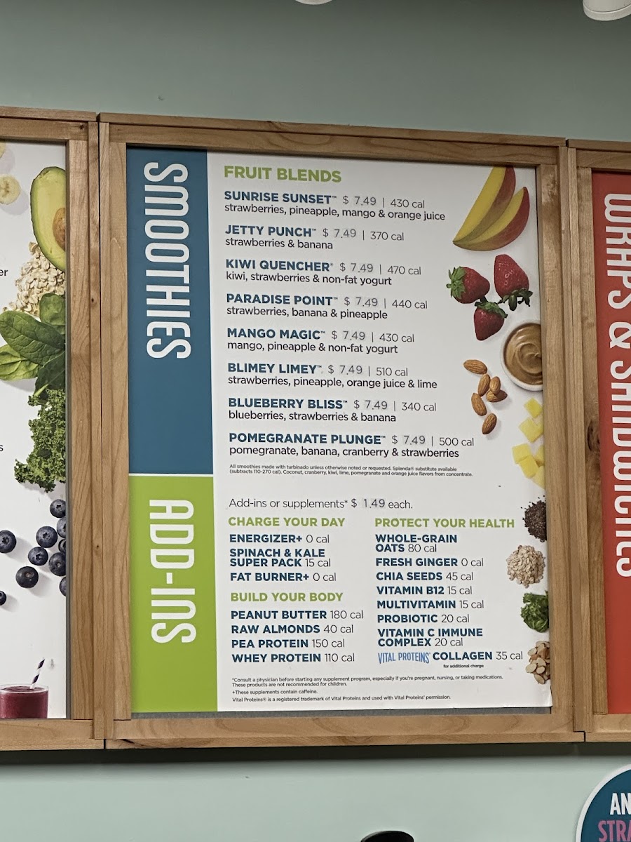 Tropical Smoothie Cafe, located in Buffalo, NY, offers a vibrant menu that promises a refreshing escape for food lovers. Known for their fresh, customizable smoothies, this cafe delivers a delightful array of flavors in every sip. Signature smoothies like the 'Jetty Junior' combine strawberries and bananas, while the 'Awesome Chocolate' tantalizes with its blend of banana and chocolate. The menu extends beyond smoothies, featuring satisfying wraps and sandwiches such as the kids' Turkey & Cheddar Wrap and Cheese 'Dilla, both crafted with wholesome ingredients. The delightful sides, like Maplekissed Sweet Potatoes and Kale & Apple Slaw, enhance any meal. Customers rave about the friendly service and the modern ambiance, making it a perfect spot for a quick yet fulfilling meal. Pairing options, like a smoothie with a flatbread, ensure a delicious combination every time. Truly, Tropical Smoothie Cafe is where health meets taste in a joyful culinary experience.